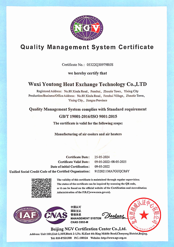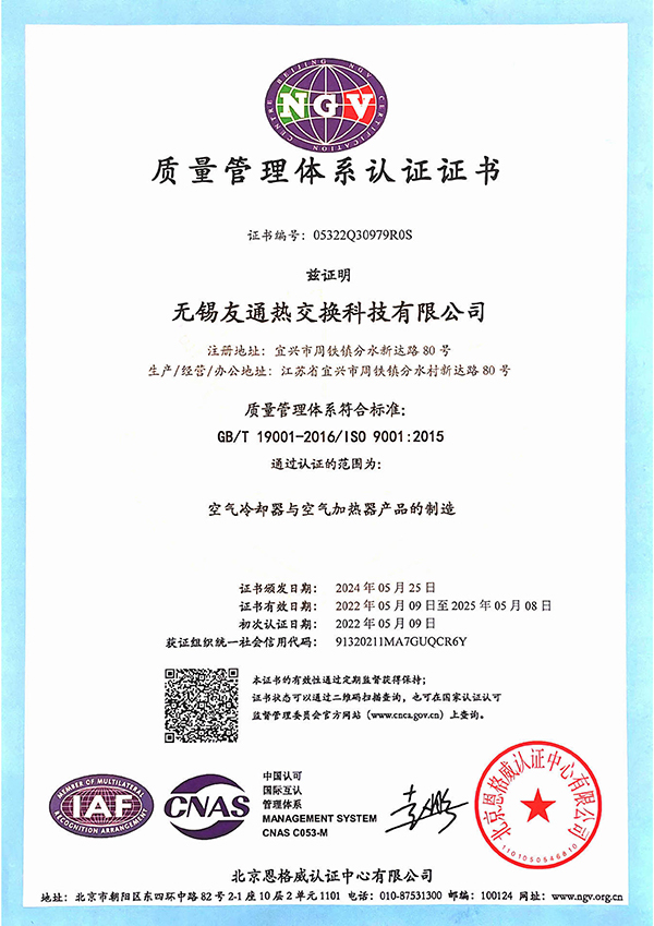 質量管理體系認證證書